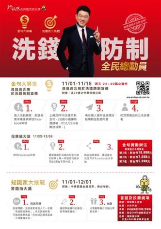金句大募集等相關活動訊息資訊已刊登行政院洗錢防制辦公室網站(網址:http://www.amlo.moj.gov.tw),歡迎邀親朋好友踴躍參加。