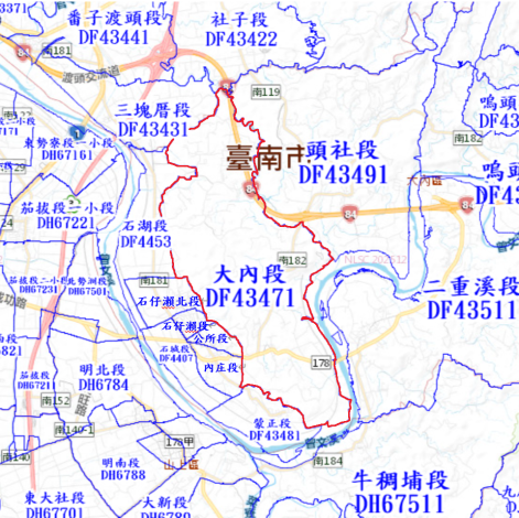 辦理區域:臺南市大內區大內段-筆數:約4940筆,面積:約962公頃
